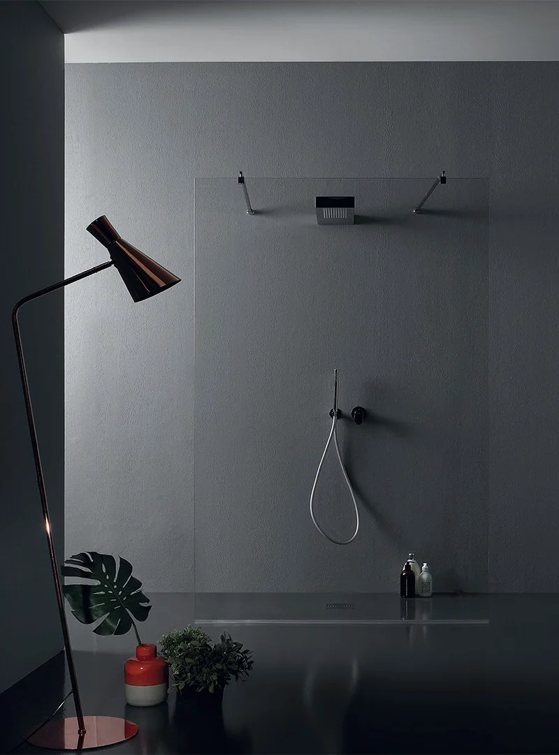 Walk-in eller hjørne brusevæg i 8 mm. hærdet glas.
